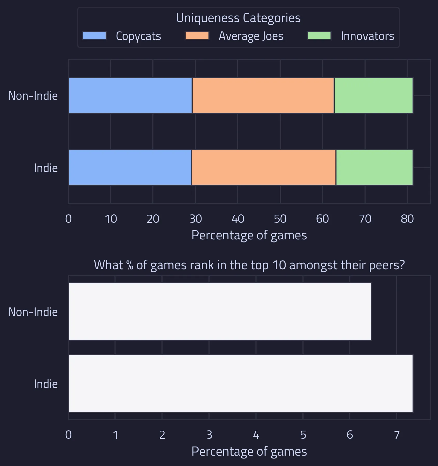 - Innovators - games that are very different to the games around them on the Steam map